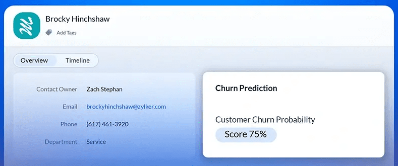 After the effort it takes to gain new customers, losing them can be painful. Zoho CRM now has an automated prediction function that allows you to reduce so-called 'customer churn'.